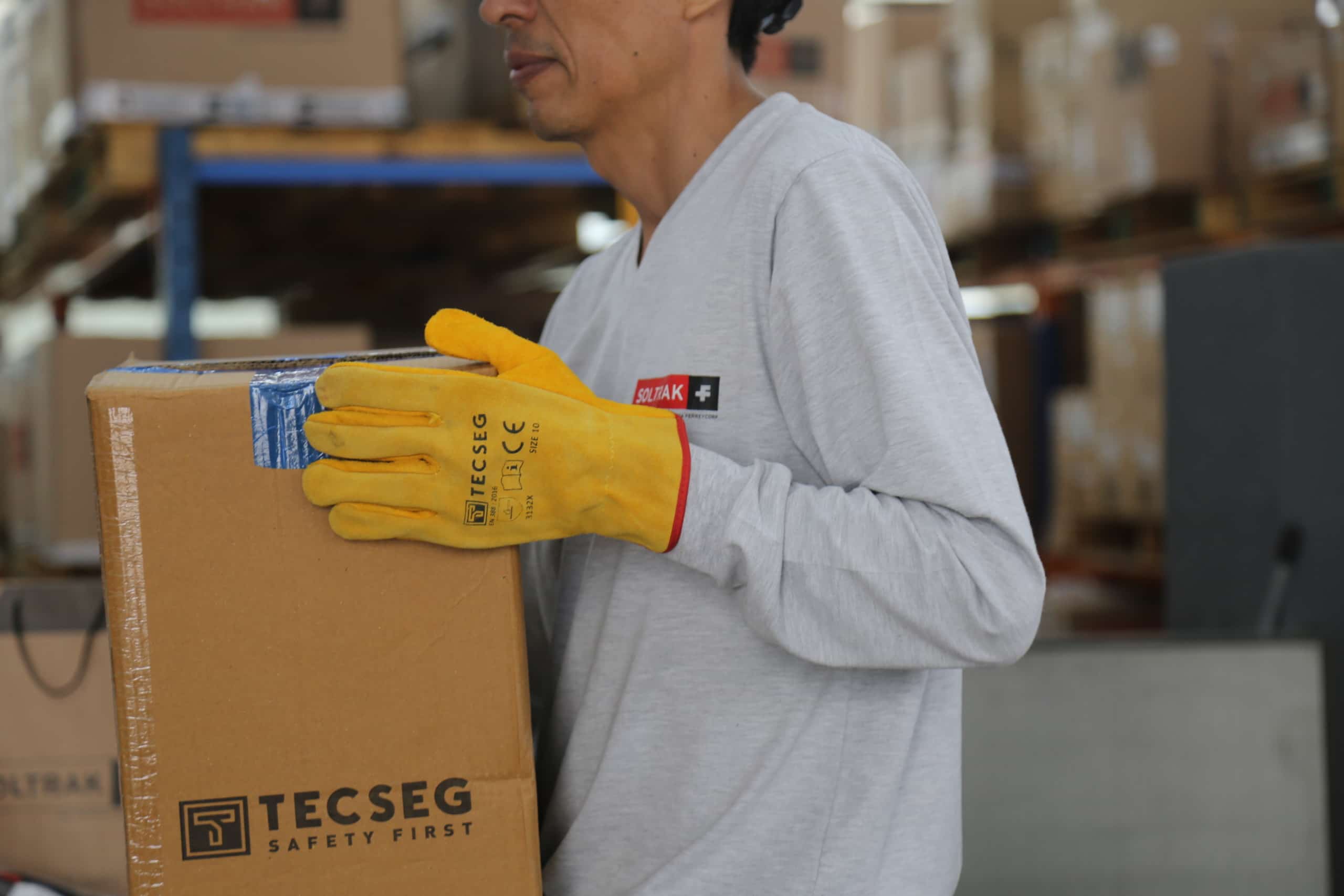 - Manipulación general: para tareas de carga y descarga, se recomienda un guante con resistencia a la abrasión, como los guantes Tecseg Tecflex con recubrimiento sintético, que cumplen la norma EN388.