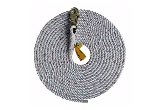Cuerda de Línea de Vida con Gancho de Seguridad 3M DBI-SALA 1202794 de 15 m de mezcla de poliéster / polipropileno de 16 mm (5/8 ") de diámetro con gancho de seguridad en un extremo. También se ofrecen varios estilos de contrapesos para mantener tensa la línea salvavidas y optimizar el rendimiento de los sistemas de agarre de cuerda.